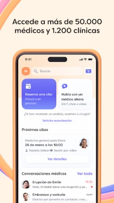 - Contactar con un médico de familia por videollamada 24/7 y hablar con especialistas a través de chat.