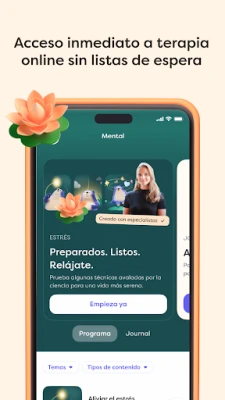 Con Alan podrás disponer de sesiones de terapia online con psicólogos profesionales sin necesidad de prescripción previa. También tendrás acceso a recursos educativos, ejercicios guiados de meditación y respiración y un diario guiado diseñado por terapeutas para crear mejores hábitos de salud mental.