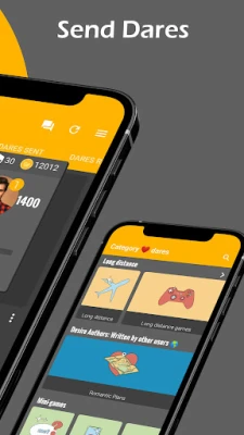 Choose from hundreds of dares. We upload new dares every week, so you’ll always have new ideas to add more love and passion to your relationship. Send the dares you like to your love. You can also write your own dares.