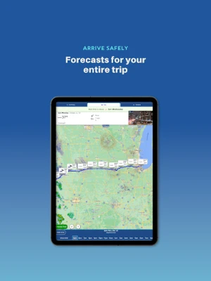 Travel weather forecasts for your entire road trip at the time you will arrive. Weather alerts, radar, traffic cameras, and plan for rests.