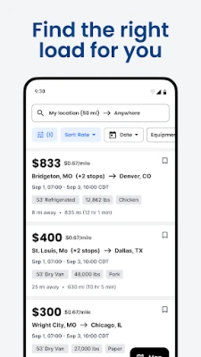 • Book loads instantly and place bids directly in the app — no phone calls required